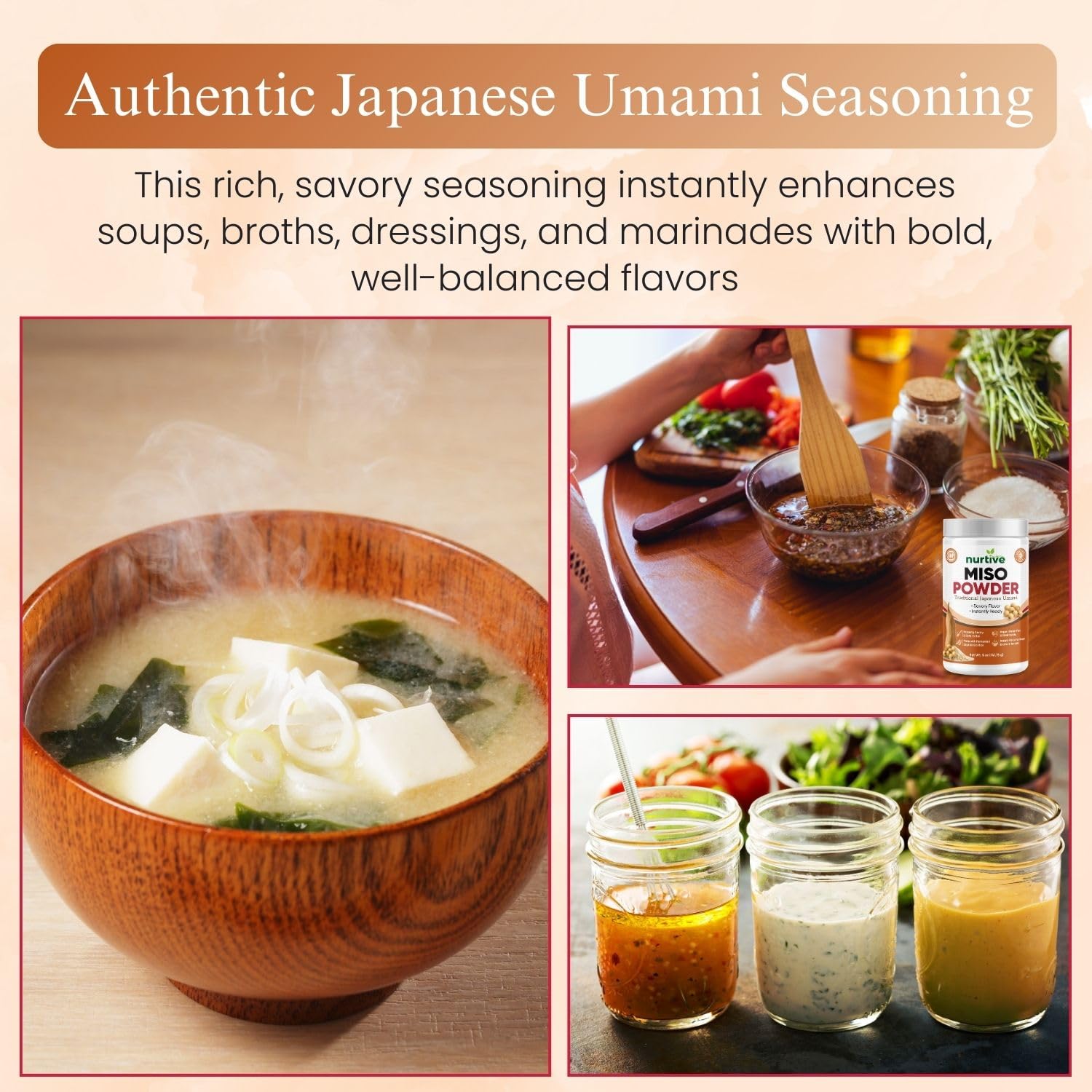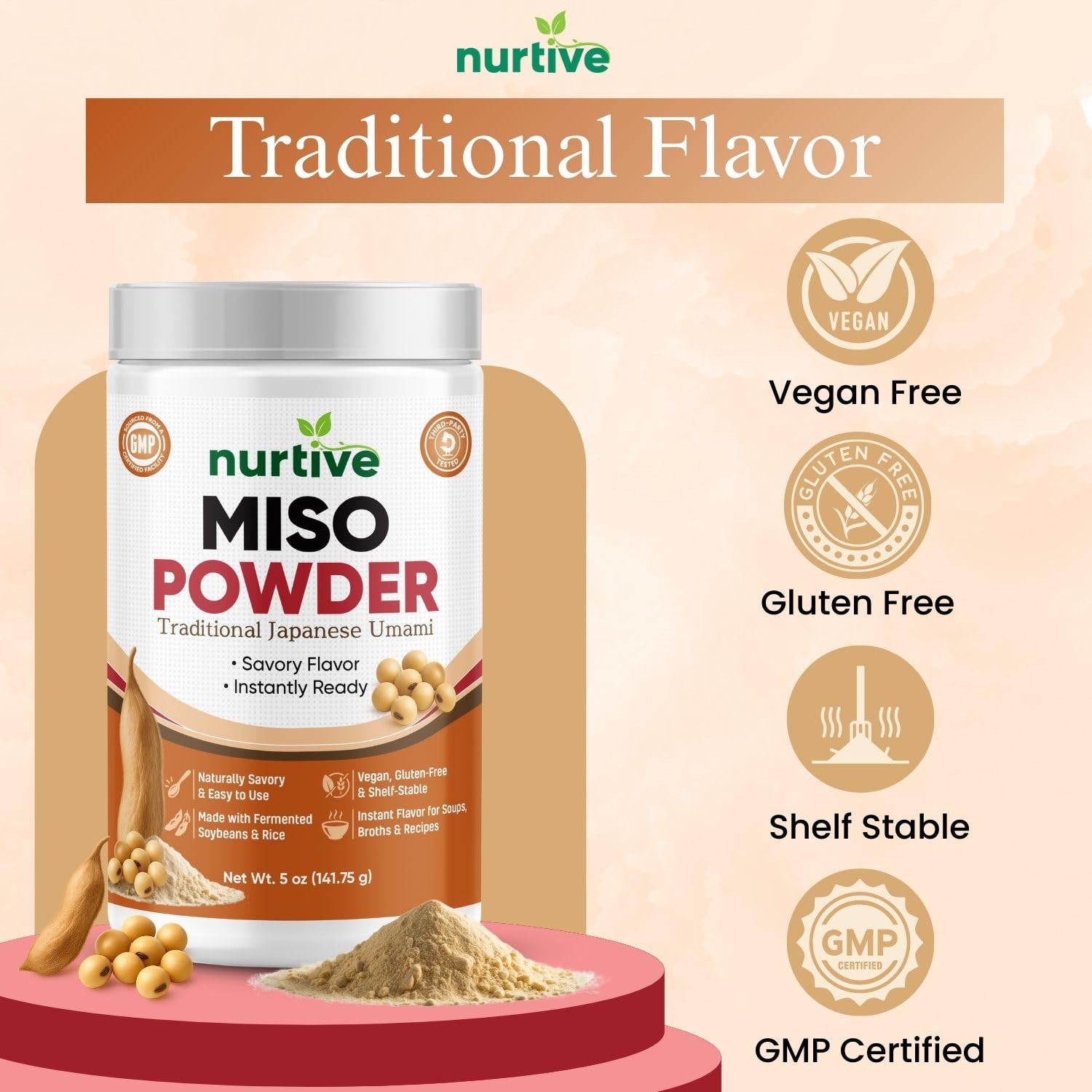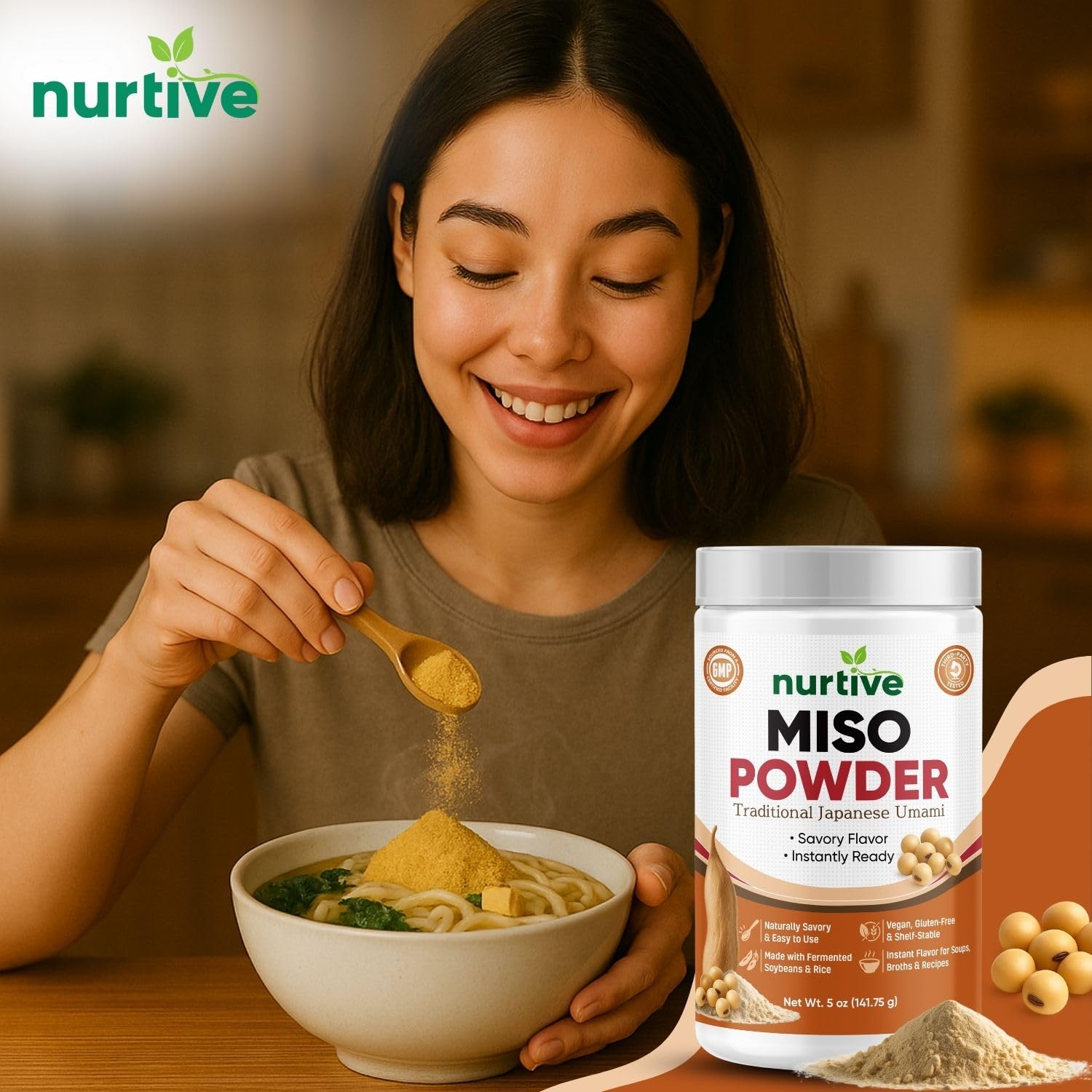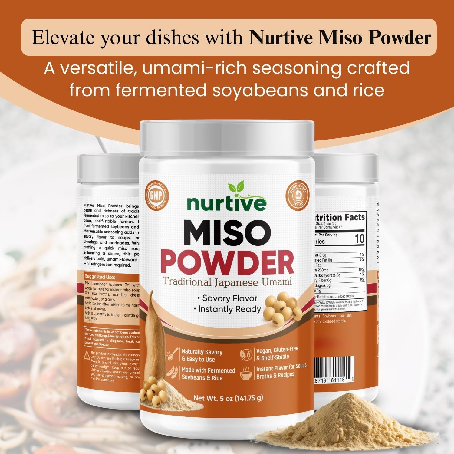 - ๐๐ฒ๐๐ผ๐ป๐ฑ ๐ฆ๐ผ๐๐ฝ โ ๐ฌ๐ผ๐๐ฟ ๐๐๐ฒ๐ฟ๐๐ฑ๐ฎ๐ ๐จ๐บ๐ฎ๐บ๐ถ ๐๐ผ๐ผ๐๐: Nurtive Miso Powder is a flavor multitasker. Use it to season stir-fries, ramen, noodles, rice bowls, salad dressings, marinades, glazes, and more. Sprinkle it directly into any dish where you want savory depth and a rich, satisfying finish. Versatile, convenient, and always ready