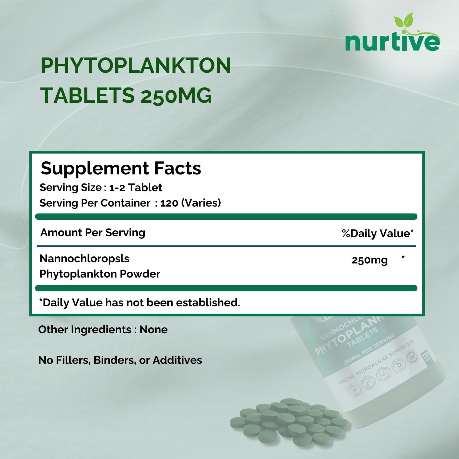 Nannochloropsis Phytoplankton Tablets – 250mg per Serving