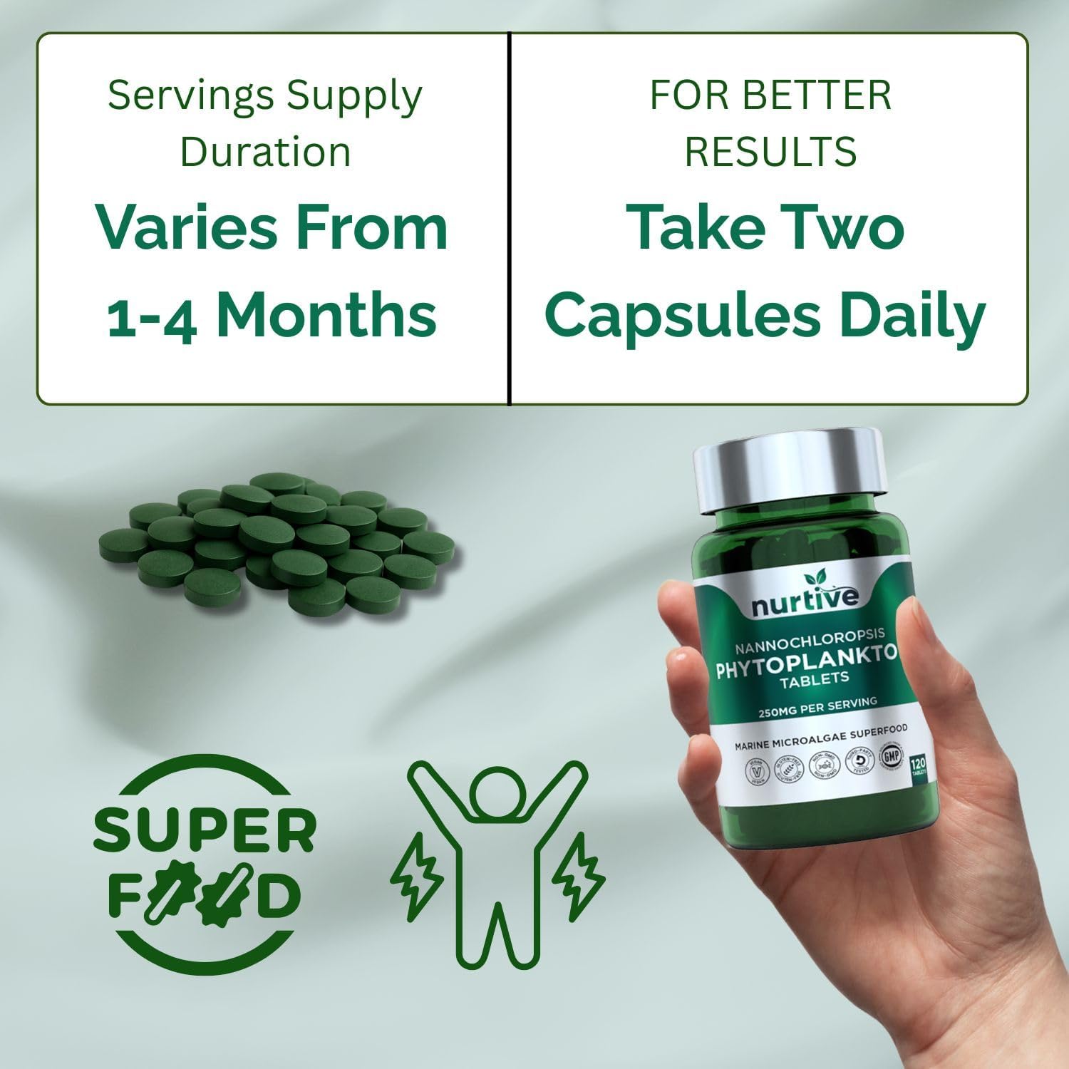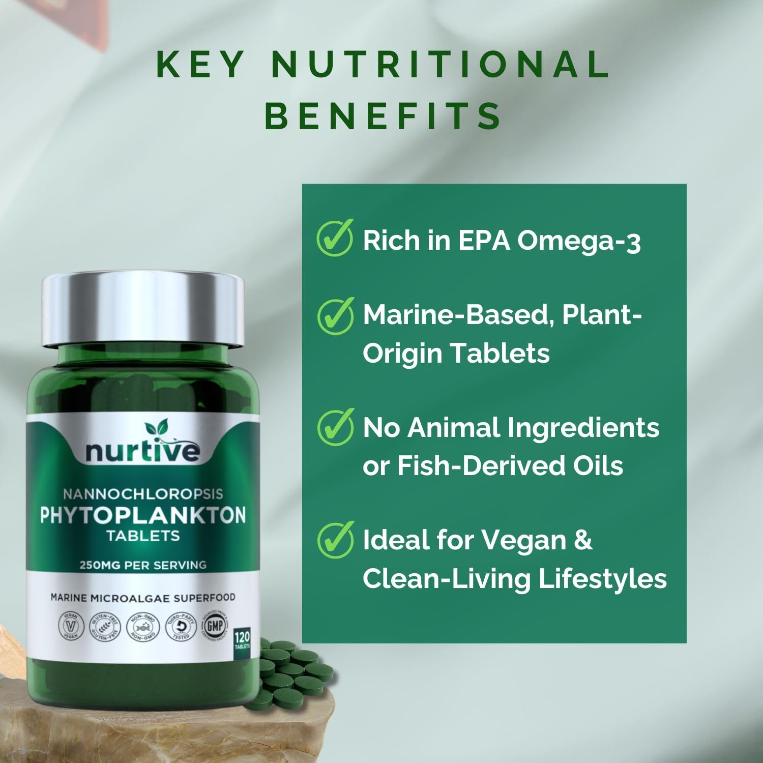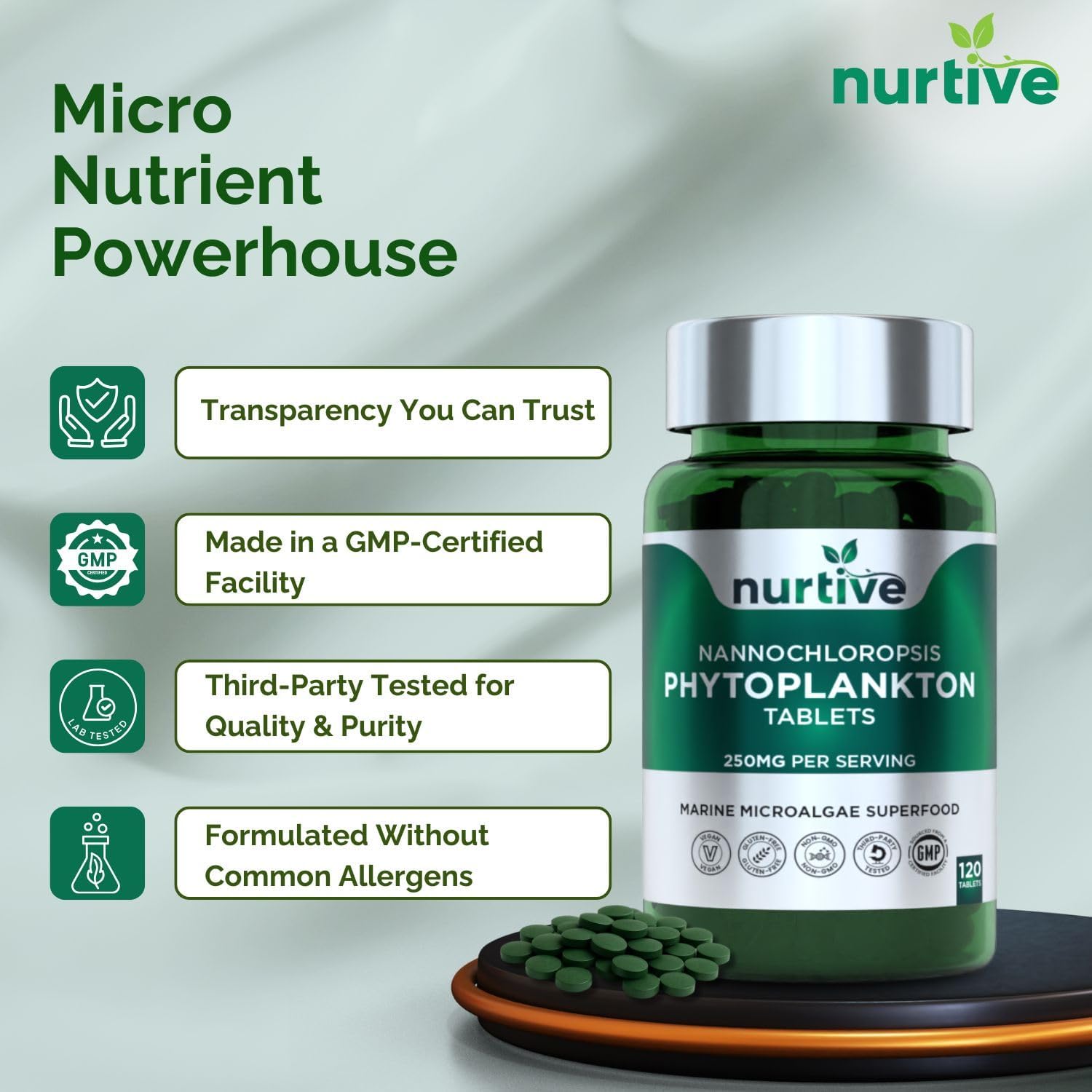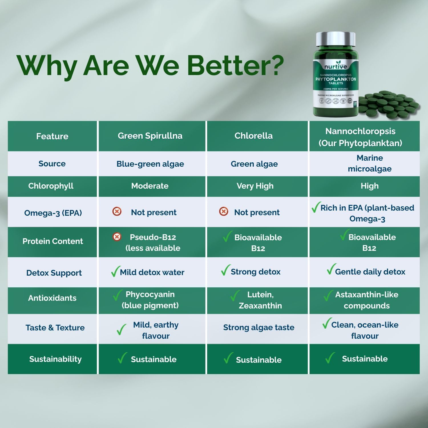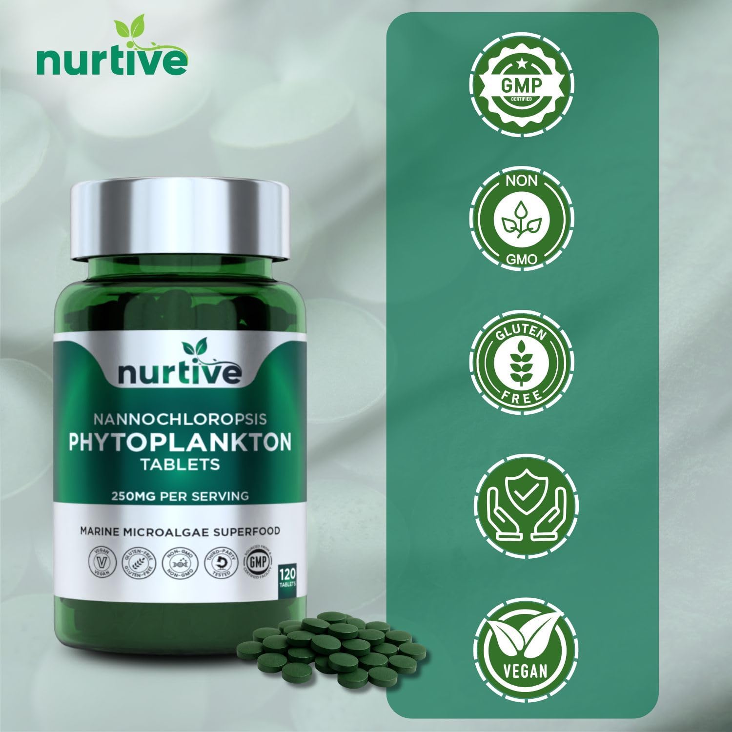 - Marine Microalgae Superfood in Tablet Form – Nannochloropsis phytoplankton, a nutrient-dense marine microalgae, is compressed into easy-to-use 250mg tablets—ideal for those looking to include plant-based marine ingredients in their daily routine