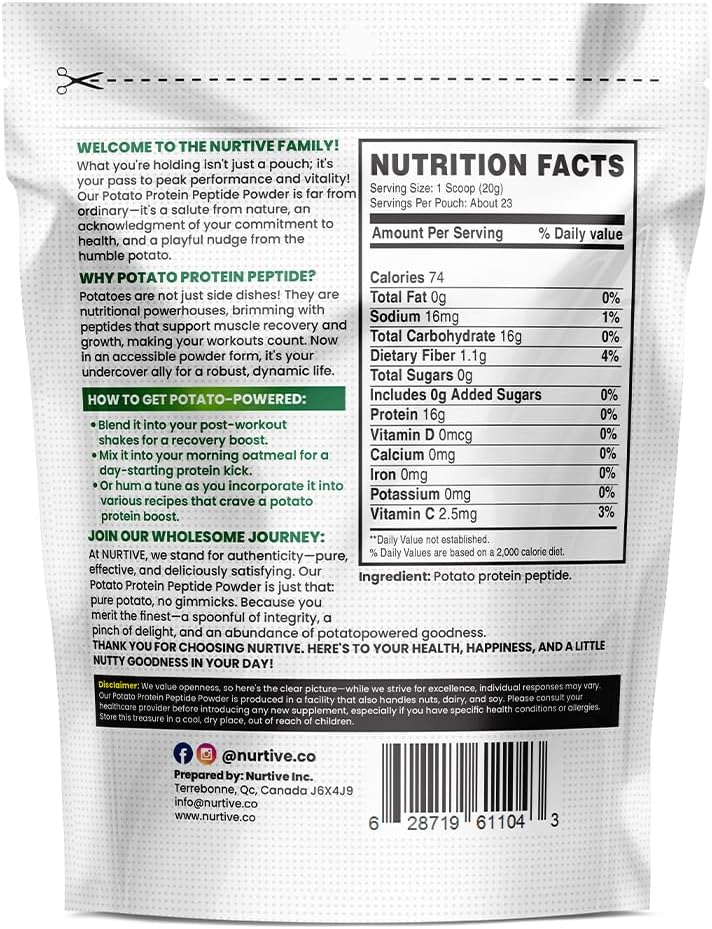 - 100% Plant-Based Protein: Packed with natural peptides from potatoes.